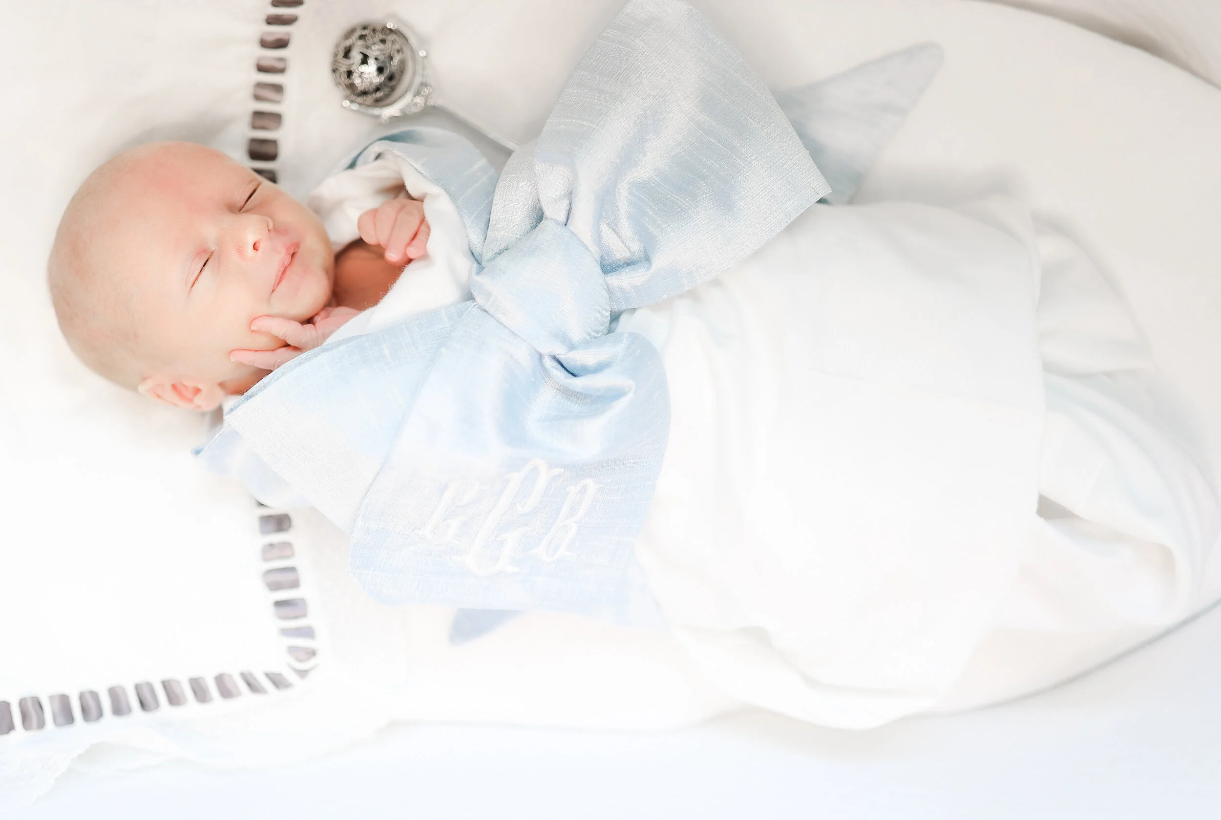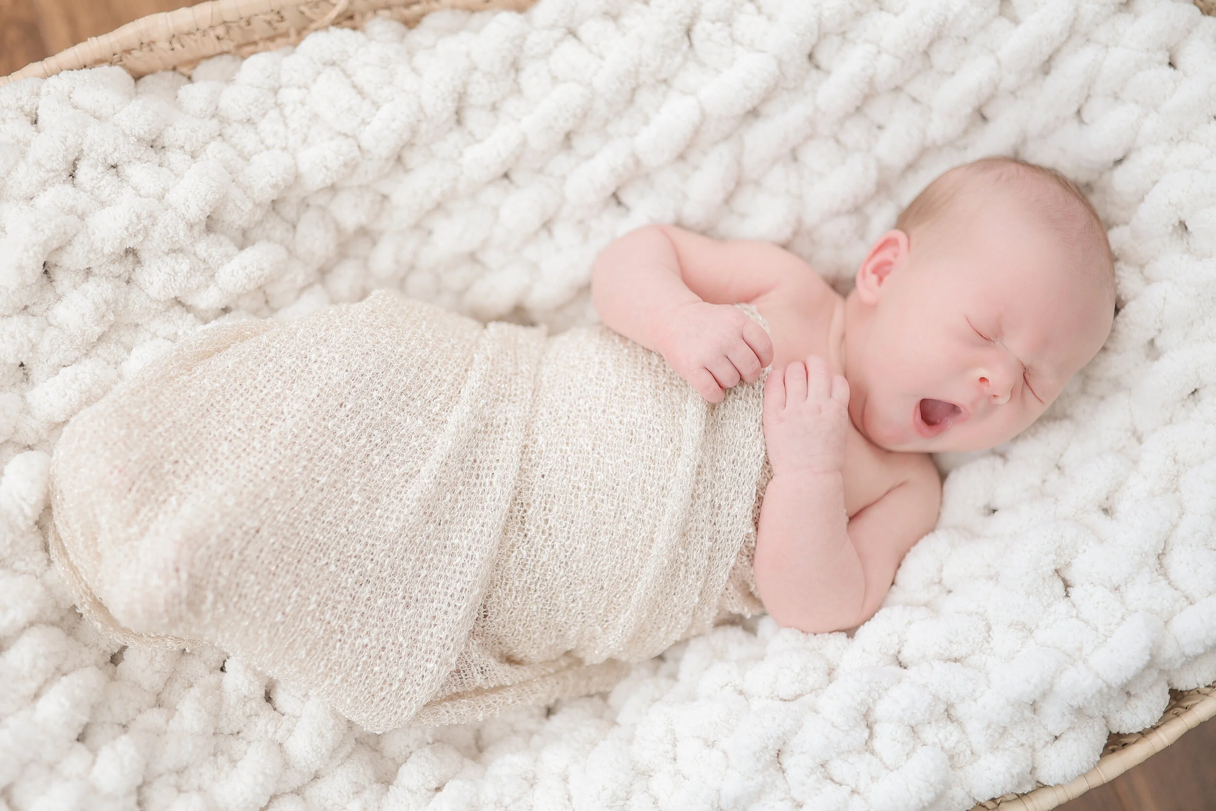 -They can go nakey, with diapers nearby to catch all the things! Or you are always welcome to use my curated collection of newborn swaddles and wraps. I always bring my moses basket filled with an assortment of solid colored, textured blankets and wraps.